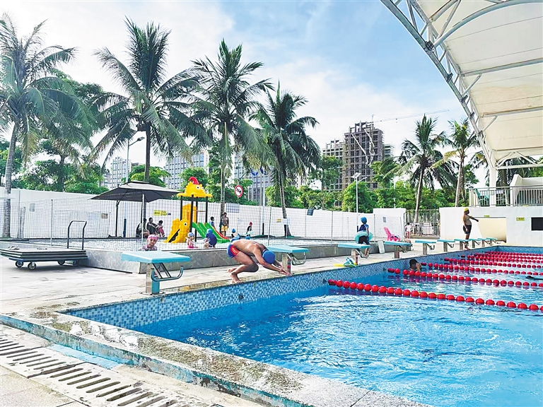 近日,临高县体育公园游泳馆标准泳池内水花飞溅,儿童戏水池里孩童嬉闹,更衣淋浴间里家长为孩子整理泳衣……当日,这座投资近千万元、建筑面积2300多平方米的现代化游泳馆正式向公众开放。