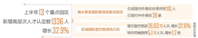 此外,上半年13个重点园区新增高层次人才认定数1336人,增长32.9%,为园区高质量发展注入动能。陵水黎安国际教育创新试验区引进国内外高校优秀师资110人,增长57.1%;已签约中外高校26家,增长18.2%,教育开放格局逐步形成。乐城国际医疗旅游先行区吸引医疗旅游人次26.63万,增长32.6%;特许药械使用5.1万人次,增长1.2倍,医疗旅游品牌影响力持续扩大。(海南日报全媒体记者陈婧)
