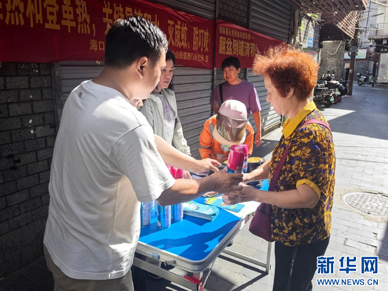 海口市的家庭健康指导员向辖区内老人宣传普及基孔肯雅热等蚊媒传染病知识。新华网发