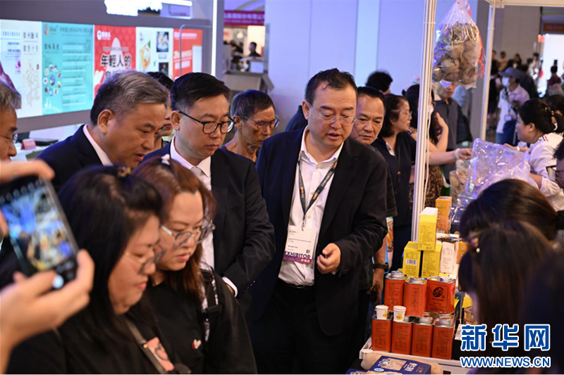 农业农村部贸易促进中心主任彭廷军和中央政府驻香港特别行政区联络办经济部副部长兼贸易处负责人周强率领的VIP团组首站到访海南展团。