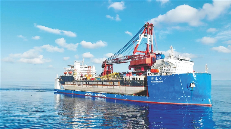 作为此次政策落地的“首航者”,“祥泰口”轮为无限航区自航半潜船,总长231.8米、总吨4.71万,配备先进双电力推进系统,主机功率达1.2万千瓦,可运载超大重量、超大尺寸的海上大型平台、工程结构物、模块化装备及各类船舶,是深海工程与远洋运输领域的关键装备。