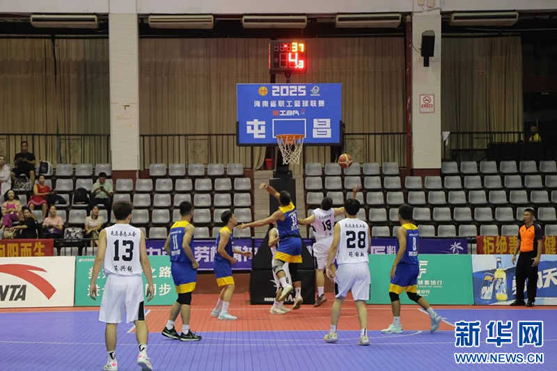 2025海南省职工篮球联赛东部赛区(屯昌站)比赛现场。新华网发