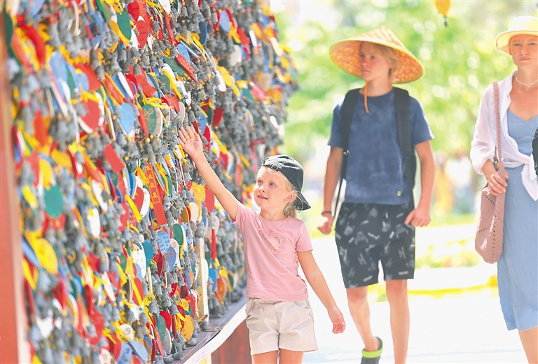 10月7日,游客在三亚南山文化旅游区游览。新华社发(陈文武 摄)