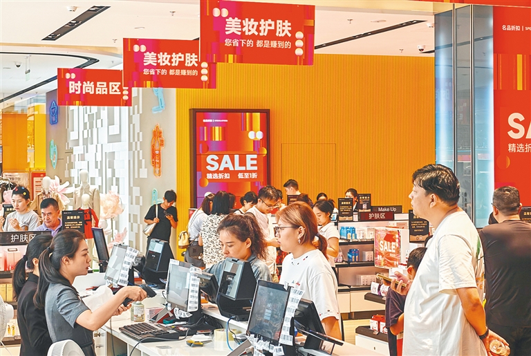 10月7日,消费者在海口国际免税城选购免税商品。海南日报全媒体记者 陈元才 摄