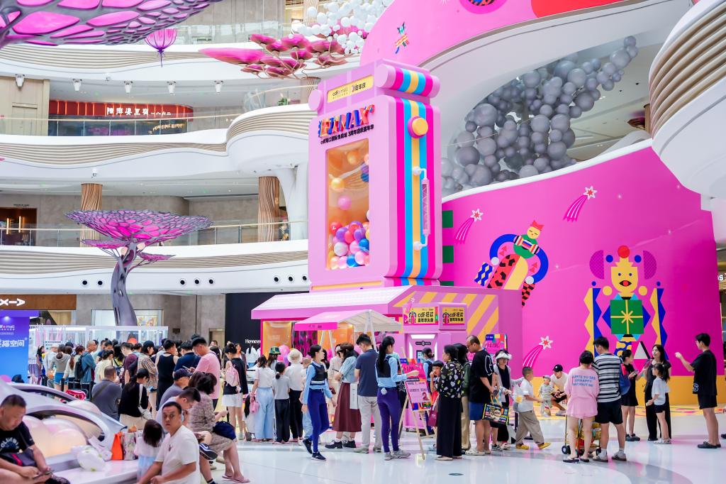 三周年店庆期间,免税城突破传统购物模式,首次以“嘉年华”为主题打造多维互动体验空间。中庭天际秘林化身为趣味乐园,设置巨型扭蛋机、淘金站、吃喝玩乐街区等互动装置,消费者凭借“MAX畅玩币”,即可解锁“吃、喝、玩、购、娱”五大消费环节,实现从“快速购物”到“停留体验”的转变。同时,小丑巡游、嘉年华剧场等活动的加入,进一步强化场景的娱乐属性,让免税购物成为兼具趣味性与记忆感的休闲旅程。