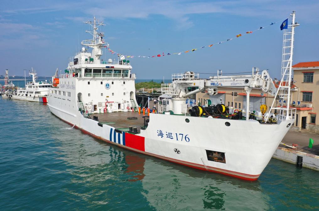 11月13日在海口拍摄的“海巡176”轮列编仪式现场。新华社记者 郭程 摄