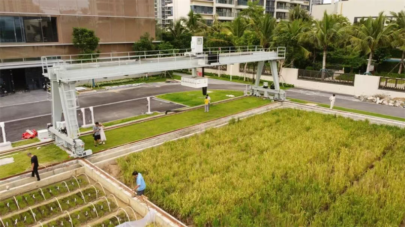 在三亚南繁基地,农技人员弯腰劳作的身影逐渐减少,取而代之的是往来穿梭的AI机器人与高大的轨道式采集设备。“从耗时近半年的人工采集,到机器人的‘一键获取’,棉田表型数据采集效率因科技赋能实现了质的飞跃。”中国农科院国家南繁研究院张建华介绍。除此以外,基地内高5.7米的轨道式高通量植物表型采集平台,集成5种高精度传感器,可快速采集分析植物品种的可见光、高光谱、叶绿素荧光等信息,为科研人员提供精准决策依据。