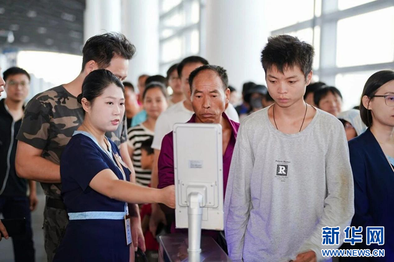 乘客正在通过新海港安检。新华网发