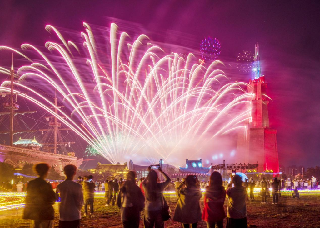 海南长影奇幻乐园烟花秀。