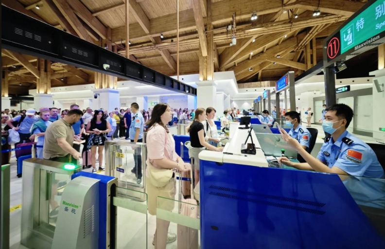 为应对假期出入境客流高峰,美兰、凤凰出入境边防检查站提前发布客流高峰预测,实时监测旅客流量变化,加强现场勤务组织,合理安排执勤警力,提前开足查验通道,增设现场标识指引,确保中国公民和外国旅客高效、顺畅通关。