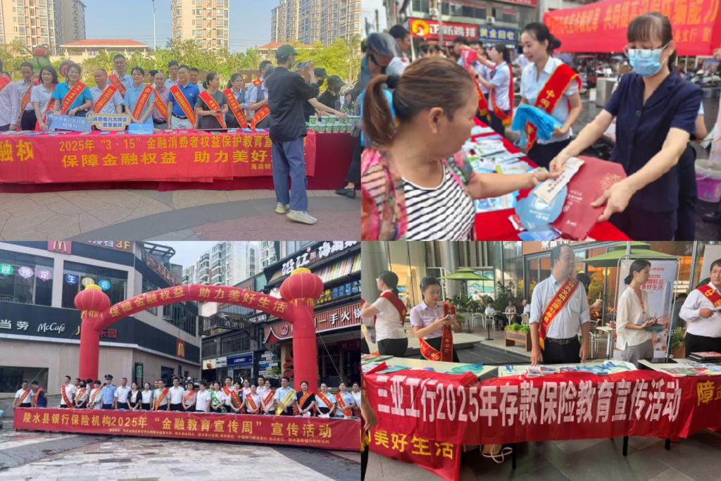 三亚分行、澄迈支行、定安支行、陵水支行等结合“3・15金融消费者权益日”、金融知识普及月等重要节点,利用商圈人员密集的优势,组织员工走进辖区核心商圈设立宣传展台,向来往群众和商户普及存款保险、反洗钱、防非法集资等知识。