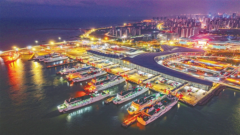 1月4日晚间,海口市新海港码头灯火通明,客滚船有序进出港,一派繁忙景象。作为海南自贸港连接内地的重要枢纽,封关运作后的新海港客货运输量呈现稳健增长态势。码头启用“一站式通关”模式,新增自助申报通道,配合线上预约服务,通关效率大幅提升。