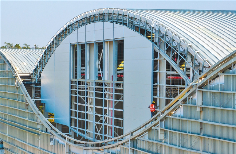 海南日报全媒体记者在施工现场看到,工人们正在进行外立面幕墙安装、道路硬化、内部装修、设备安装调试等工序,多台大型机械有序联动,智能化作业成为亮点。“我们以机械作业为主、人工辅助,实现了施工管理电子信息化、设备安装智能化。”现场项目负责人介绍,目前厂房已完全具备设备安装条件,外墙装修和园区道路硬化预计本月底就能全面竣工。