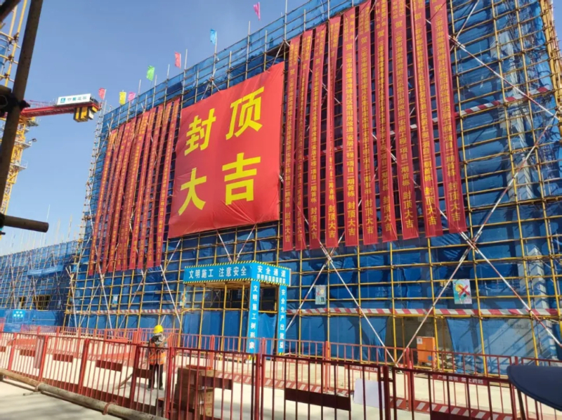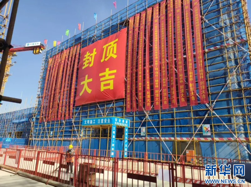 三亚市海棠湾湾坡片区危旧房改造项目二期主体结构封顶。新华网发