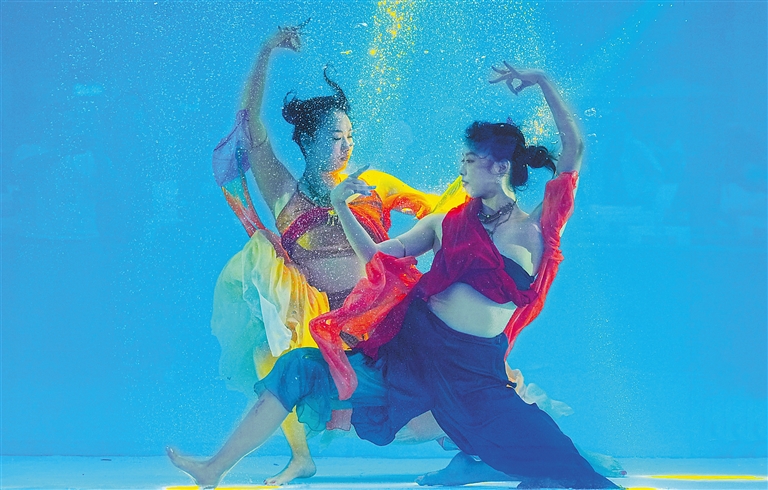 图为参赛选手进行水下极限舞蹈表演。