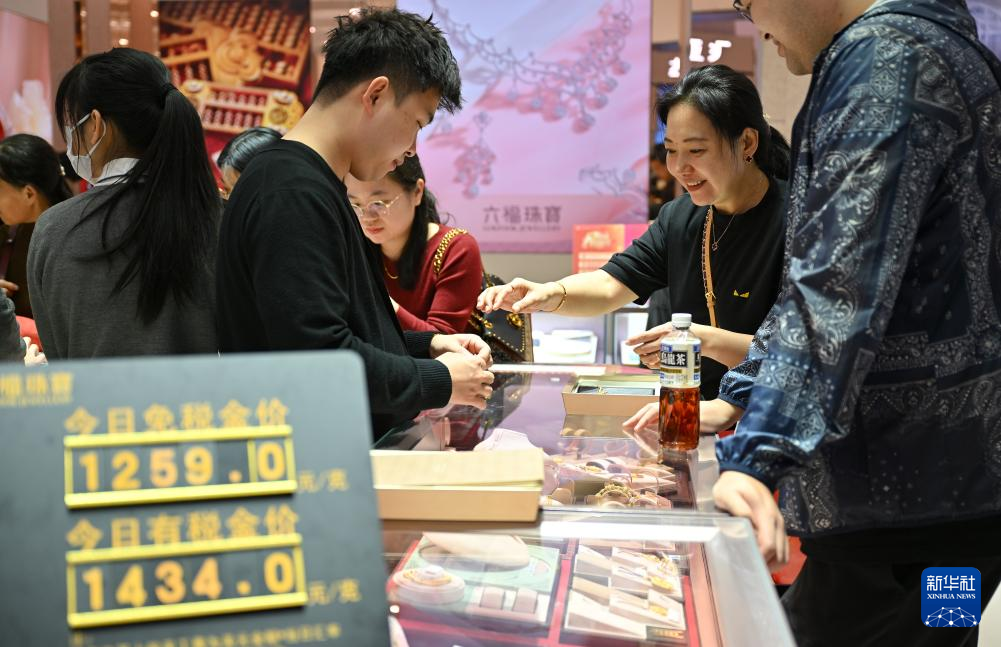 1月17日,顾客在海口日月广场免税店选购黄金饰品。新华社记者 郭程 摄