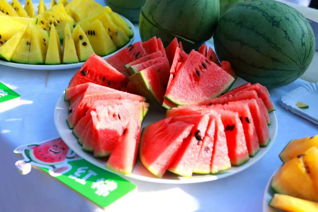 在推介会现场的品鉴区,12个新优西甜瓜品种经雕刻装饰后依次陈列,造型别致、色泽鲜亮,充分彰显品种特色,引得与会嘉宾、种植户代表纷纷驻足观赏、细致问询。一旁整齐摆放着切好的西甜瓜果肉,供大家随时品鉴。上海选育的甜瓜品种“甜蜜20”“沪翠甜6号”以及西瓜品种“沪尚黄”,已在海南完成示范推广,成为沪琼南繁合作深耕多年的首批落地成果,凭借优良品质在海南市场获得广泛认可。