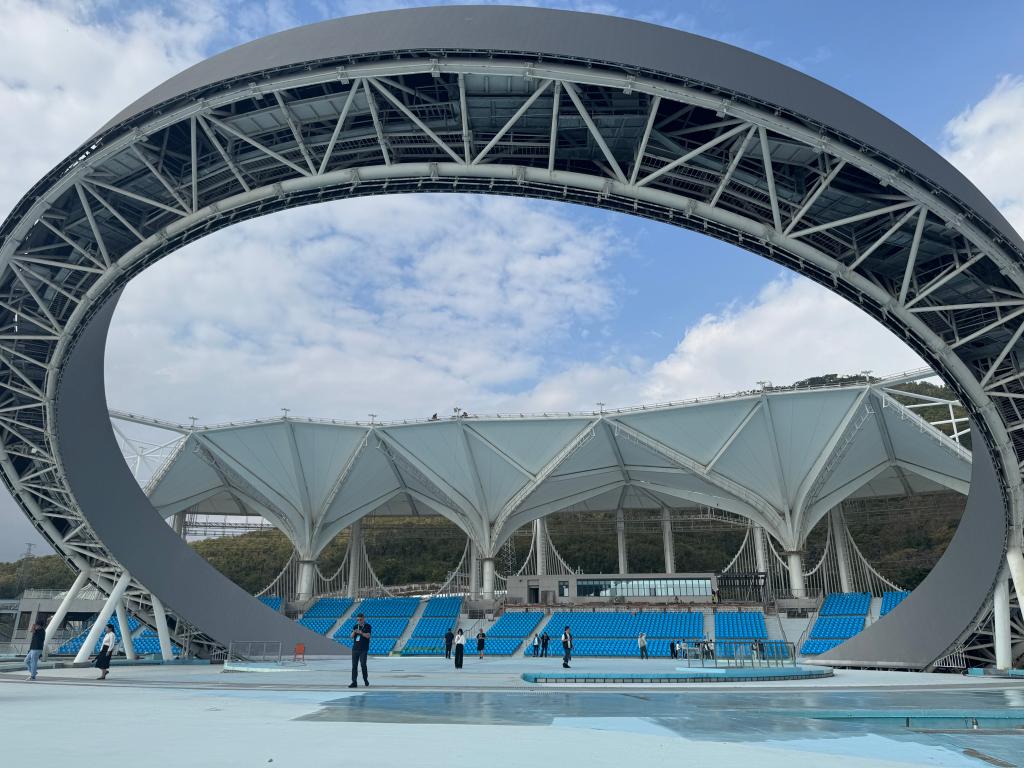 亚沙公园依山傍海,将举行开、闭幕式。据现场工作人员介绍,场馆距离大海只有200多米,在开幕式的入场仪式环节,运动员们将从海边走向舞台。