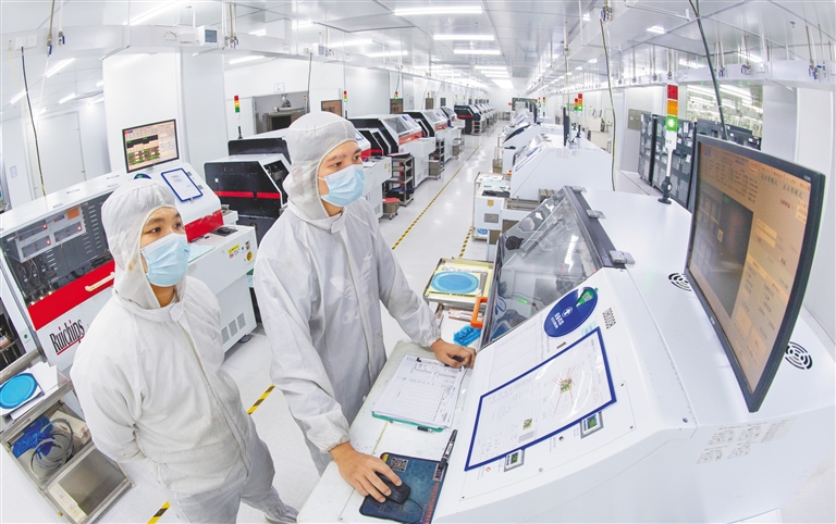 1月22日,海口综合保税区内的海口市锐骏微电子有限公司生产车间,工作人员熟练操控设备。据介绍,该车间的半导体元器件历经多道智能工艺加工后,产品将发往全球电子产业链下游企业。目前,该企业订单已排至3个月后,正开足马力全力冲刺一季度 “开门红”。海南日报全媒体记者 袁琛 摄