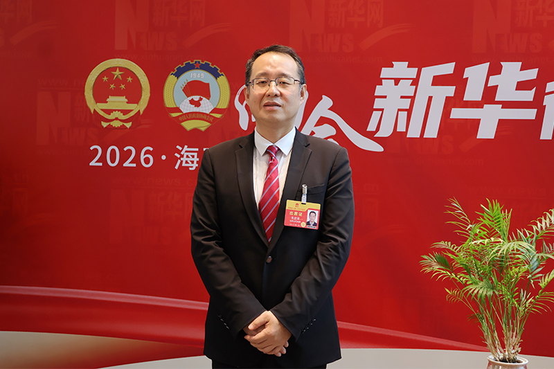 海南省人大代表、五指山市委书记朱宏凌接受采访。新华网发