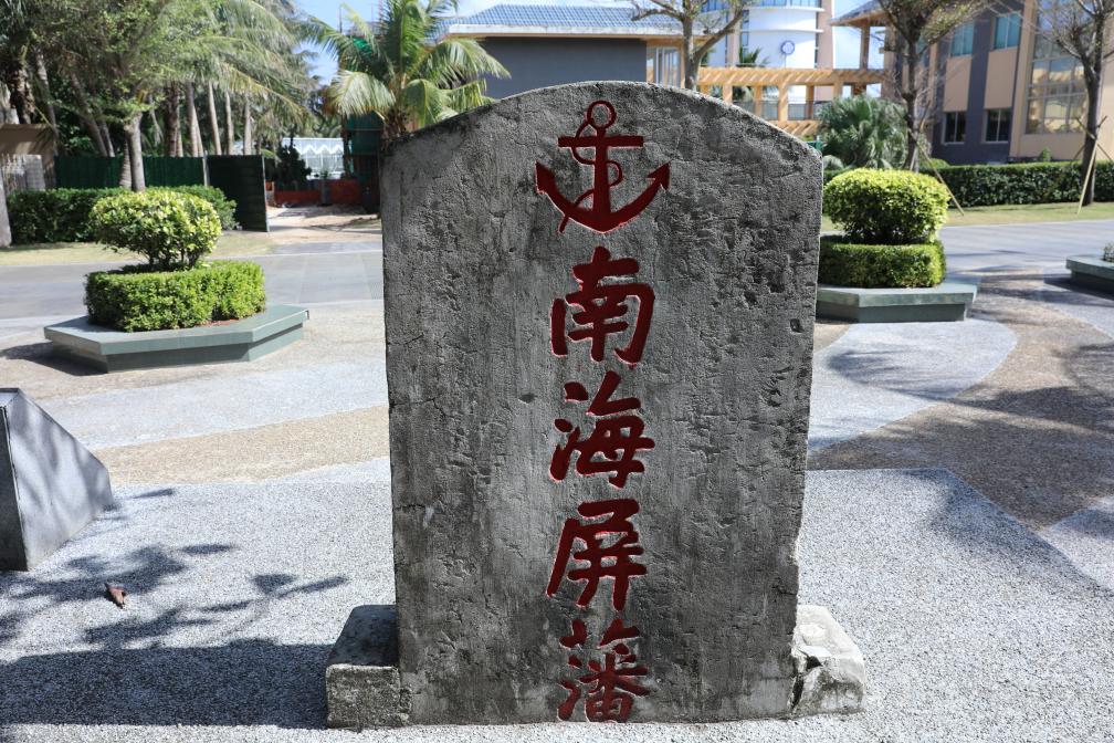 沿永兴岛宣德路前行,一块白色碑石面朝大海庄严屹立。石碑正面,“南海屏藩”四个朱红大字遒劲有力;背面镌刻着“海军收复西沙群岛纪念碑”。碑旁的石板清晰记载:“二战期间,日本非法侵占我西沙群岛和南沙群岛。1945年8月,日本战败并宣布无条件投降。中国政府……于1946年10月派遣海军舰队协助广东省政府接收南海诸岛……”