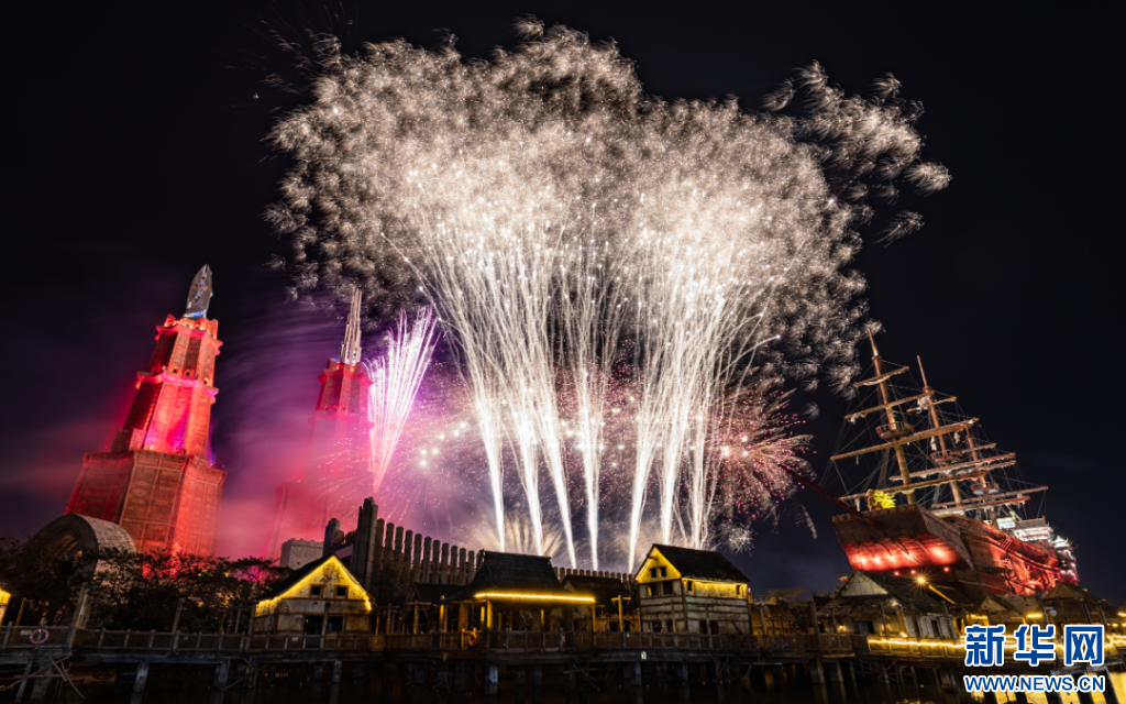 海南长影奇幻乐园烟花秀活动现场。