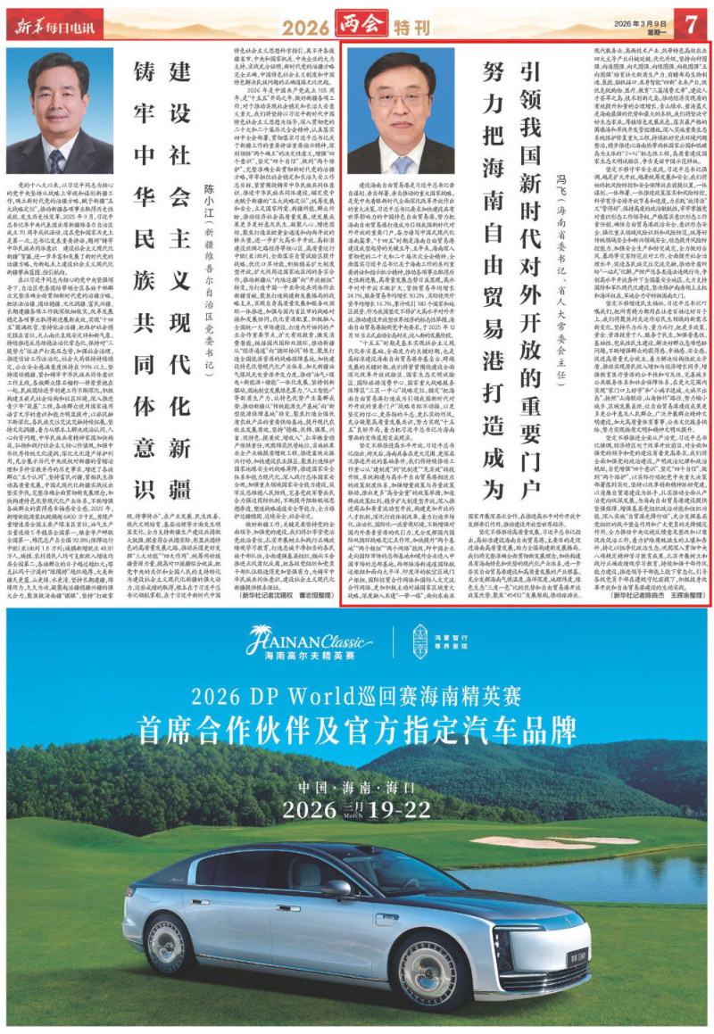 作者:冯飞(海南省委书记、省人大常委会主任)