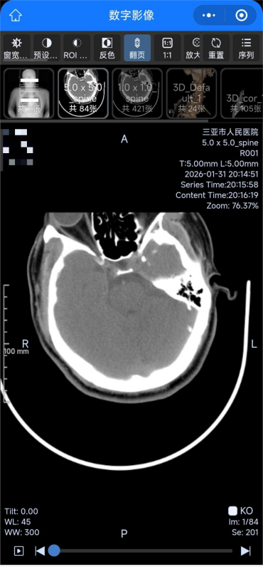 据悉,患者使用该服务有两种便捷方式,既可扫描检查纸质报告单、预约单上的二维码快速查询,也可关注“三亚市人民医院”微信公众号,通过“个人中心”进入“云胶片”版块,完成报告查看、影像调阅和授权分享操作。