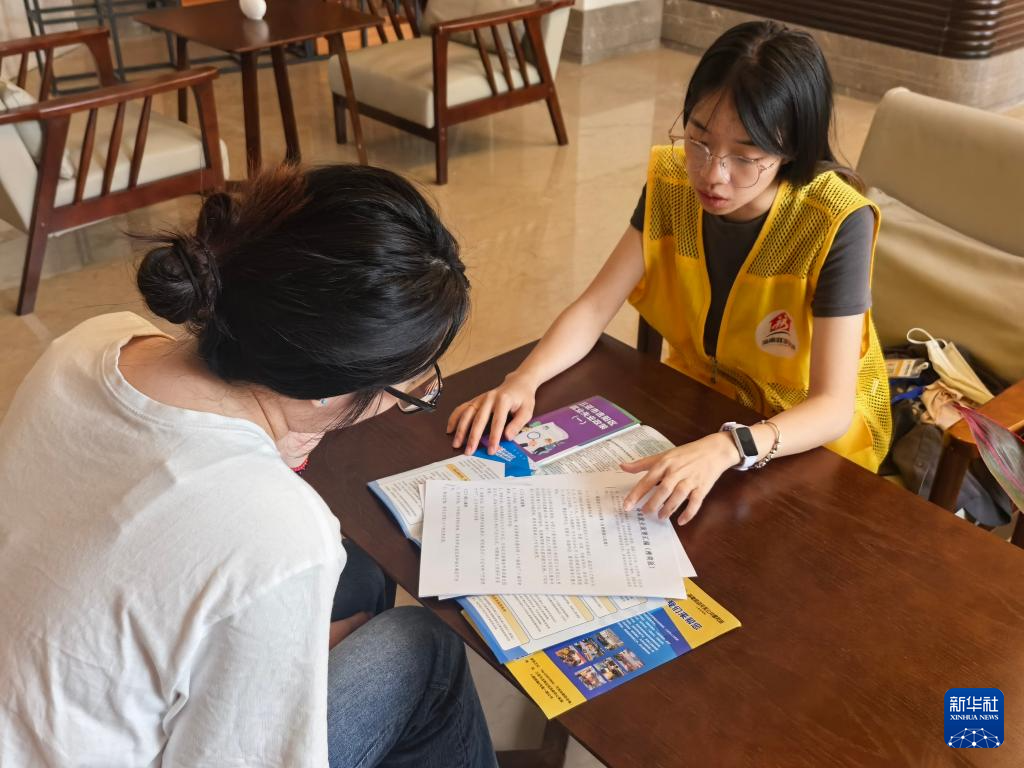 在海南省三亚市的三亚柏栎度假酒店驿站,就业服务工作人员上门为入住青年提供求职指导。新华社记者 夏天 摄