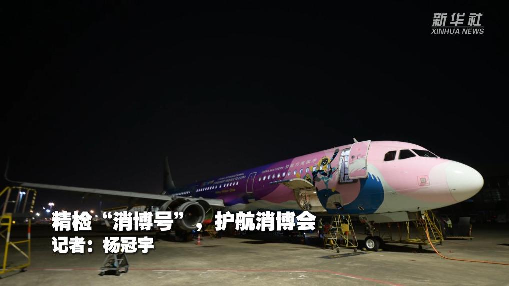 近日,在海口美兰国际机场停机坪上,南航工程技术分公司机务工程师对“消博号”彩绘飞机开展深度检查,更好服务消博会广大参展旅客。